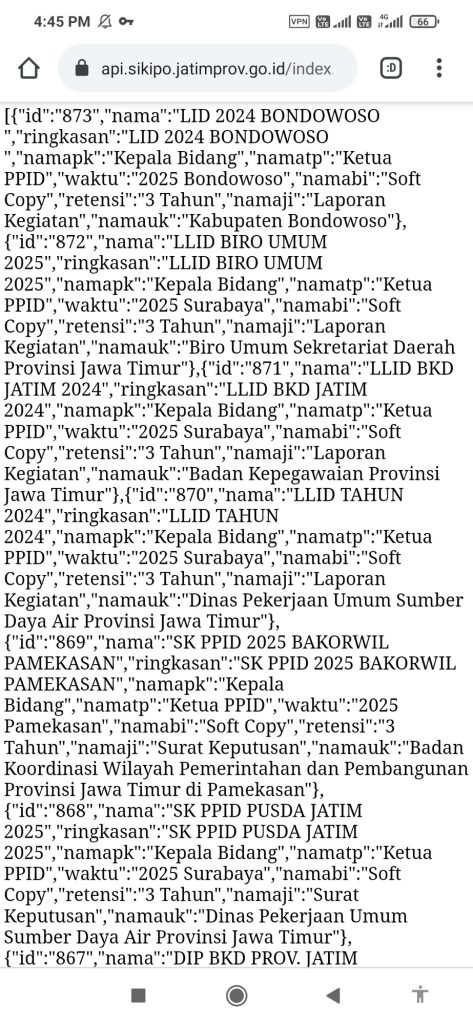 saat itu saya sedang melihat lihat halaman baru website jatimprov tapi ga sengaja liat ada source api yang firasat saya bilang pasti terbuka, akhirnya saya test dan ternyata firasat saya benar.